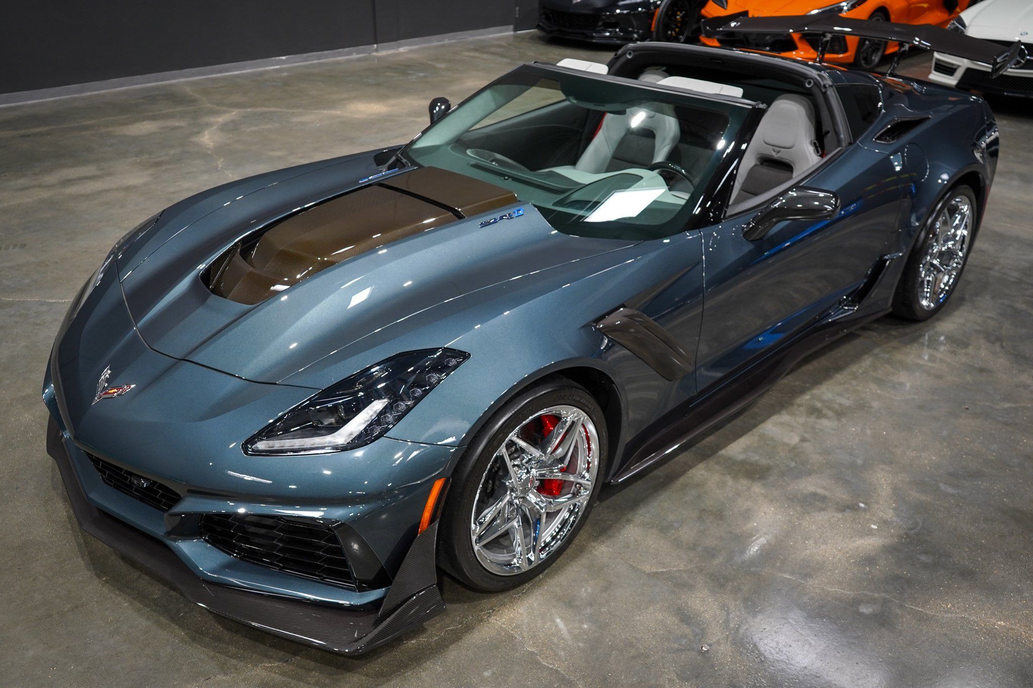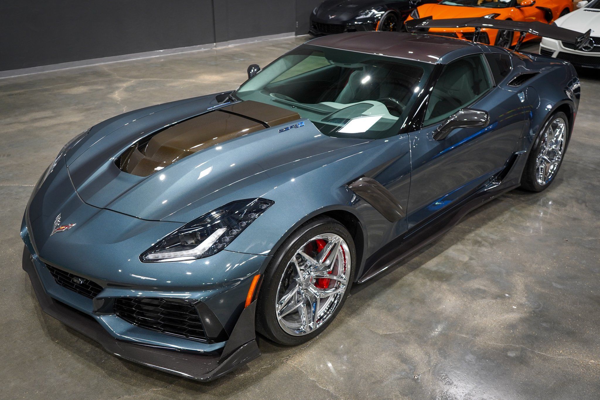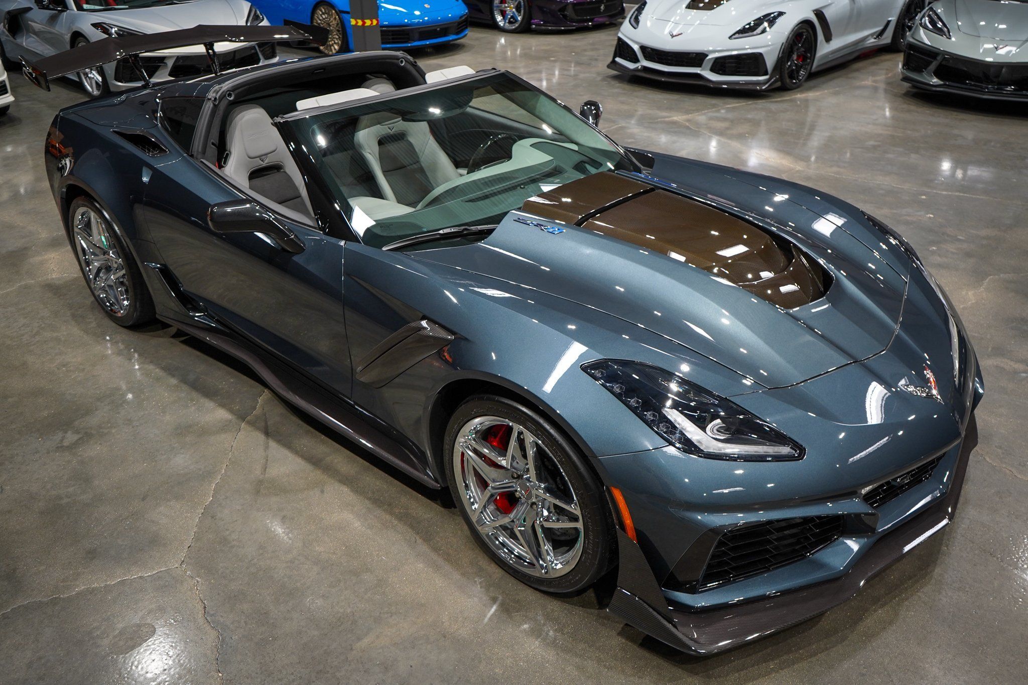FREE NATIONWIDE ENCLOSED DELIVERY!!! ON SALE NOW! 1 OF ONLY 165 EVER MADE! ONLY 2K MILES! ZTK TRACK PKG! SUPER RARE SHADOW GRAY! 1 YEAR ONLY CAR! THESE 19 ZR1'S ARE ON A STRONG BUY RIGHT NOW! 1-2 YEARS AGO, THIS CAR WAS OVER $250K! THEY WILL GET BACK THERE OR MORE, IT IS JUST A MATTER OF TIME! NOW IS THE TIME TO BUY BEFORE PRICES GO BACK UP EVEN MORE!! SUPERCHARGED 755HP 715TQ! R3 MOTORCARS IS PROUD TO PRESENT THIS UNBELIEVABLE 2019 CHEVROLET CORVETTE ZR1 3ZR COUPE WITH ONLY 2K MILES! THIS VETTE COMES WITH A PERFECT CERTIFIED CARFAX AND AUTOCHECK HISTORY REPORT! THE EXTREMELY RARE SHADOW GRAY METALLIC EXTERIOR AND EVEN MORE RARE 2 TONE GRAY NAPPA LEATHER SHOW LIKE NEW. GETS NO BETTER THAN THIS GORGEOUS COLOR COMBO. THIS ZR1 COMES WITH OPTIONS INCLUDING THE 3ZR PKG ($10,000), ZTK TRACK PKG WITH HIGH WING ($2,995), CHROME WHEELS ($1,995), SUEDE SEAT INSERTS & STEERING WHEEL ($695), UPGRADED COLD AIR INTAKE ($695), RED BRAKE CALIPERS ($595), 2 TONE SEATS ($395), RED SEAT BELTS ($395), CHROME BADGES ($100), CARBON FLASH MIRRORS ($100), CARBON FIBER GROUND EFFECTS PKG, PERFORMANCE DATA RECORDER, FRONT CURB VIEW CAMERAS, HIGH GLOSS CARBON FIBER INTERIOR PKG, SUEDE STEERING WHEEL, EXPOSED CARBON FIBER ROOF PANEL, 8" MYLINK NAVIGATION AND BACK UP CAMERA, DUAL MODE PERFORMANCE EXHAUST, HEATED AND COOLED SEATS, MAGNETIC SELECTIVE RIDE CONTROL, HEADS UP DISPLAY, MEMORY SEATS, KEYLESS GO WITH PUSH BUTTON START, ACTIVE HANDLING, BOSE SOUND, PWR WINDOWS AND LOCKS, OWNERS MANUAL, 8SP AUTOMATIC TRANSMISSION WITH PADDLE SHIFTERS ($1,725), BOTH KEYS, AND MORE! BE DIFFERENT WITH THIS UNBELIEVABLE SHADOW GRAY METALLIC ZR1! SUPER COMPETITVE FINANCING RATES AVAILABLE WITH APPROVED CREDIT. EXTENDED WARRANTIES AVAILABLE TOO! PRICED RIGHT AND READY TO GO!! PLEASE CALL ME WITH ANY QUESTIONS. THANKS.