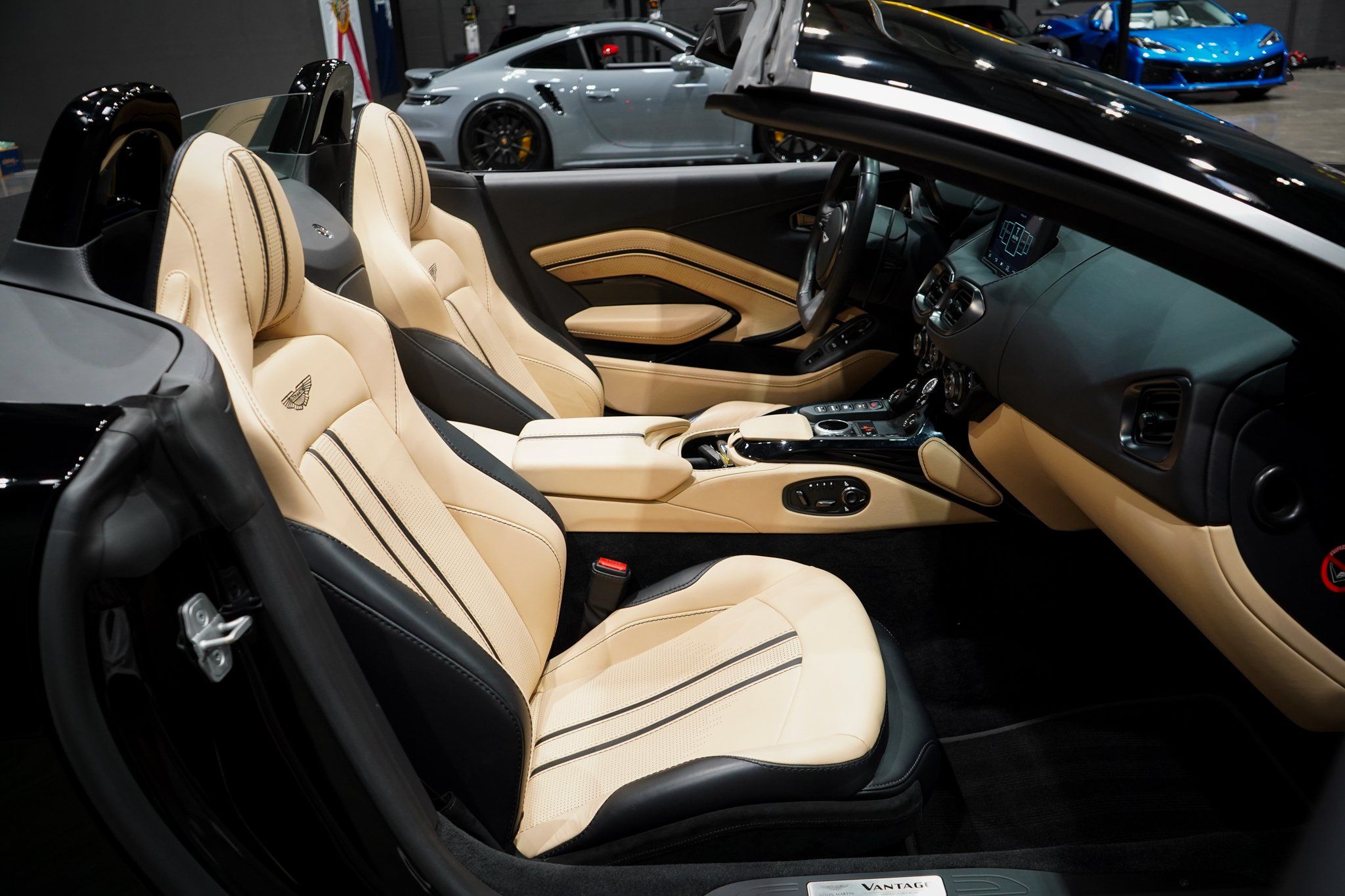 FREE NATIONWIDE ENCLOSED DELIVERY! ON SALE NOW! SAVE OVER $40,000 COMPARED TO NEW! SUPER RARE JET BLACK OVER IVORY GOLD METALLIC INTERIOR! HUGE MSRP! REMAINING FACTORY WARRANTY! R3 MOTORCARS IS PROUD TO PRESENT THIS EXTREMELY RARE 2023 ASTON MARTIN VANTAGE V8 CONVERTIBLE WITH ONLY 5K MILES. THE JET BLACK EXTERIOR AND ONYX/IVORY GOLD METALLIC LEATHER INTERIOR SHOW LIKE NEW. THIS VANTAGE COMES WITH A PERFECT CERTIFIED CARFAX AND AUTOCHECK HISTORY REPORT. THE TWIN TURBO 4.0L V8 WITH 503HP IS A THRILL TO DRIVE! I'VE DRIVEN EVERY EXOTIC AND PERFORMANCE CAR OUT THERE AND THIS CAR IS THE COMPLETE PACKAGE OF ELEGANCE AND PERFORMANCE! LOADED WITH FACTORY OPTIONS INCLUDING THE INSPIRE DUOTONE INTERIOR ($6,800), LEATHER COLOR Q SPECIAL ($5,500), 21" SATIN BLACK DT WHEELS ($4,800), OPTIONAL FRONT END WITH VANED GRILLE ($2,900), BLACK PACK LOWER ($2,500), ASTON MARTIN PREMIUM AUDIO ($2,300), SPORTS PLUS SEATS INSPIRE ($2,000), CONTRAST STITCHING ($1,900), DARK CHROME JEWELLERY PACK ($1,800), BRAKE CALIPERS IN BLACK ($1,200), VENTILATED FRONT SEATS ($1,100), SMOKED REAR LAMPS ($1,100), TRIM INLAY GLOSS BLACK ($1,000), BLACKWINGS BADGES ($900), UMBRELLA ($400), NAVIGATION, PWR WINDOWS AND LOCKS, TILT, CRUISE, 8SP AUTOMATIC TRANSMISSION WITH PADDLE SHIFTERS, BOOKS, WINDOW STICKER OF $203,186 AND ALL FACTORY DOCUMENTATION. JUST SERVICED AND READY TO GO. FACTORY WARRANTY REMAINING! EXTENDED WARRANTIES AVAILABLE. SUPER COMPETITIVE FINANCING RATES AVAILABLE WITH APPROVED CREDIT. PLEASE CALL ME WITH ANY QUESTIONS. THANKS.