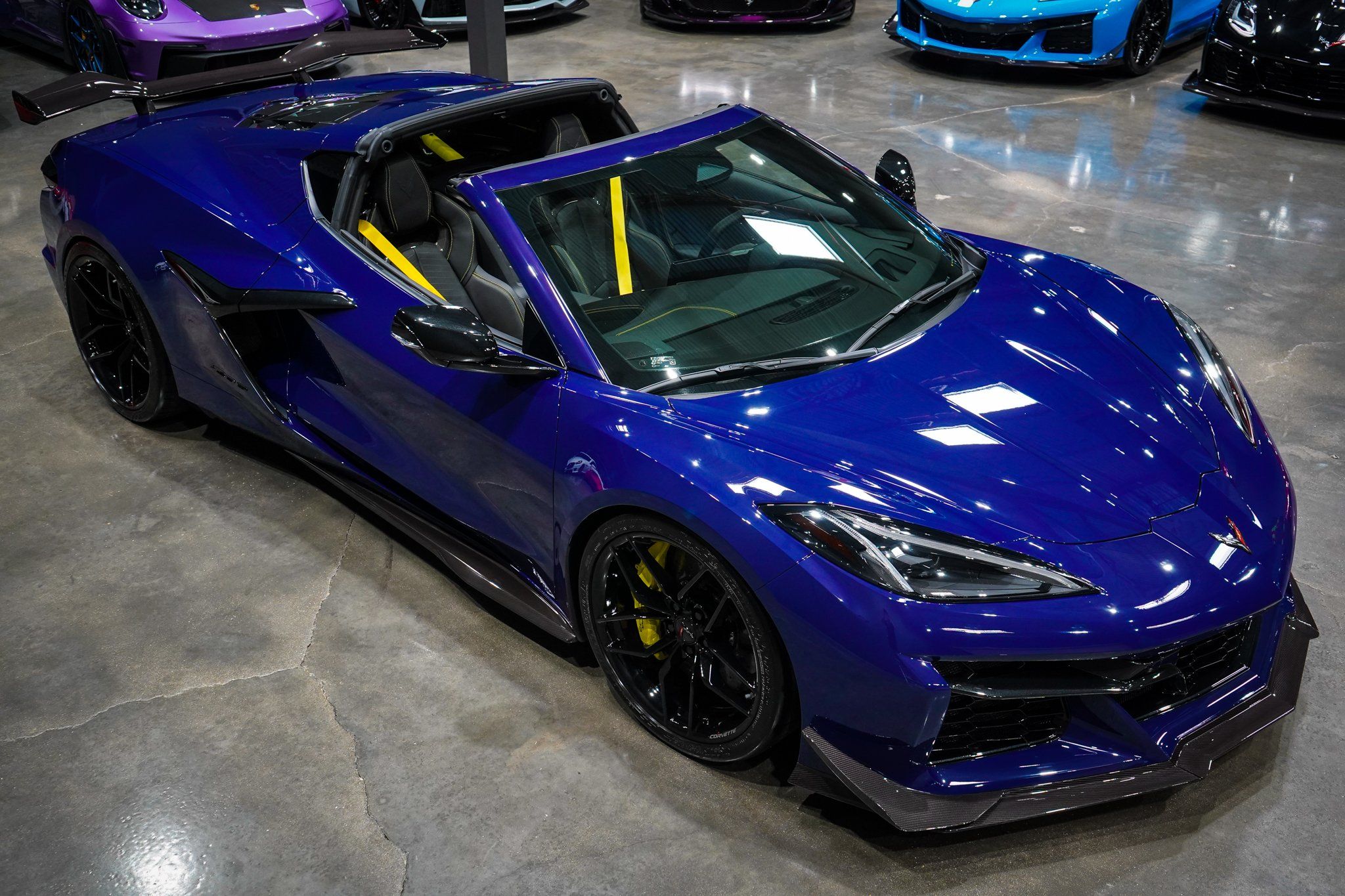FREE NATIONWIDE ENCLOSED DELIVERY! ON SALE NOW! Z07 WITH VISIBLE CARBON FIBER AERO! OVER $15K IN UPGRADES! SUPER RARE 1 YEAR ONLY HYSTERIA PURPLE! FACTORY WARRANTY! HIGHLY OPTIONED! R3 MOTORCARS IS PROUD TO PRESENT THIS UNBELIEVABLE 2025 CHEVROLET CORVETTE Z06 2LZ COUPE WITH ONLY 1K MILES! THE INSANE HYSTERIA PURPLE EXTERIOR AND BLACK LEATHER INTERIOR ARE SHOWROOM NEW. OVER $15,000 IN ADDS INCLUDES FULL FRONT END PAINT PROTECTION FILM, CERAMIC COATING, CUSTOM POWDERCOATED CALIPERS AND ENGINE ACCENTS, EVENTURI INTAKE, SOLAR PERFORMANCE 91MM THROTTLE BODY AND THROTTLE CONTROLER, MILTEK HIGH FLOW SPORT CATS, CORSA TRACK VALVED CAT BACK EXHAUST, PARAGON LOWERING SPRINGS AND COLLARS, EOS REAR CARBON FIBER DIFFUSER, PARAGON YELLOW DAYTIME RUNNING LIGHTS! THIS C8 Z06 COMES WITH OPTIONS INCLUDING THE 2LZ PKG ($8,900), VISIBLE CARBON FIBER AERO PKG ($10,495), Z06 Z07 ULTIMATE PERFORMANCE PKG WITH BREMBO CERAMIC BRAKES ($8,995), FRONT LIFT ($2,595), GT2 BUCKET SEATS (SAME AS 3LZ SEATS)($1,695), GLOSS BLACK SPIDER DESIGN WHEELS ($995), STEALTH INTERIOR ($595), YELLOW SEAT BELTS ($395), BLACK EXHAUST TIPS ($395), CARBON FLASH MIRRORS ($195), PERFORMANCE DATA RECORDER, FRONT CURB VIEW CAMERAS, NAVIGATION, DUAL MODE PERFORMANCE EXHAUST, HEATED AND COOLED SEATS, HEADS UP DISPLAY, MEMORY SEATS, KEYLESS GO WITH PUSH BUTTON START, REMOTE START, BOSE SOUND, PWR WINDOWS AND LOCKS, OWNERS MANUAL, 8SP DUAL CLUTCH AUTOMATIC TRANSMISSION WITH PADDLE SHIFTERS, BOOKS, BOTH KEYS! SUPER COMPETITVE FINANCING RATES AVAILABLE WITH APPROVED CREDIT. FACTORY WARRANTY UNTIL 60K MILES! EXTENDED WARRANTIES AVAILABLE TOO! PRICED RIGHT AND READY TO GO!! PLEASE CALL ME WITH ANY QUESTIONS. THANKS.